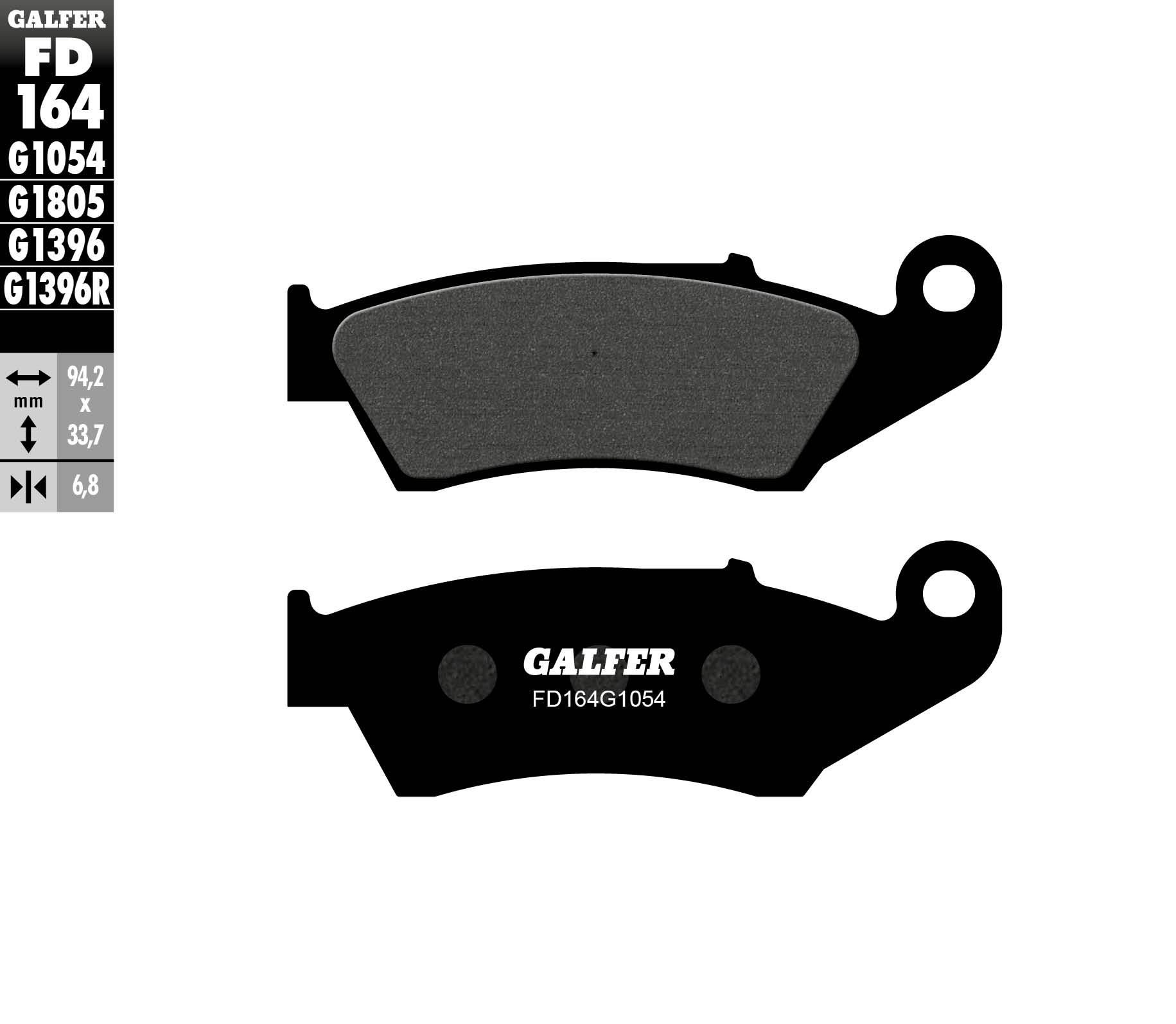 Galfer G1054 Semi Metal Street compound. This compound embodies the past, present and future of semi-metallic production at Galfer. It has been manufactured for years with minor improvements, and it s still used today in several Original Equipment Manufacturer (OEM) plants. The G1054 has an excellent coefficient of friction and low wear, offering progressive and effective braking. All these features make the compound suitable for all kinds of motorcycle.