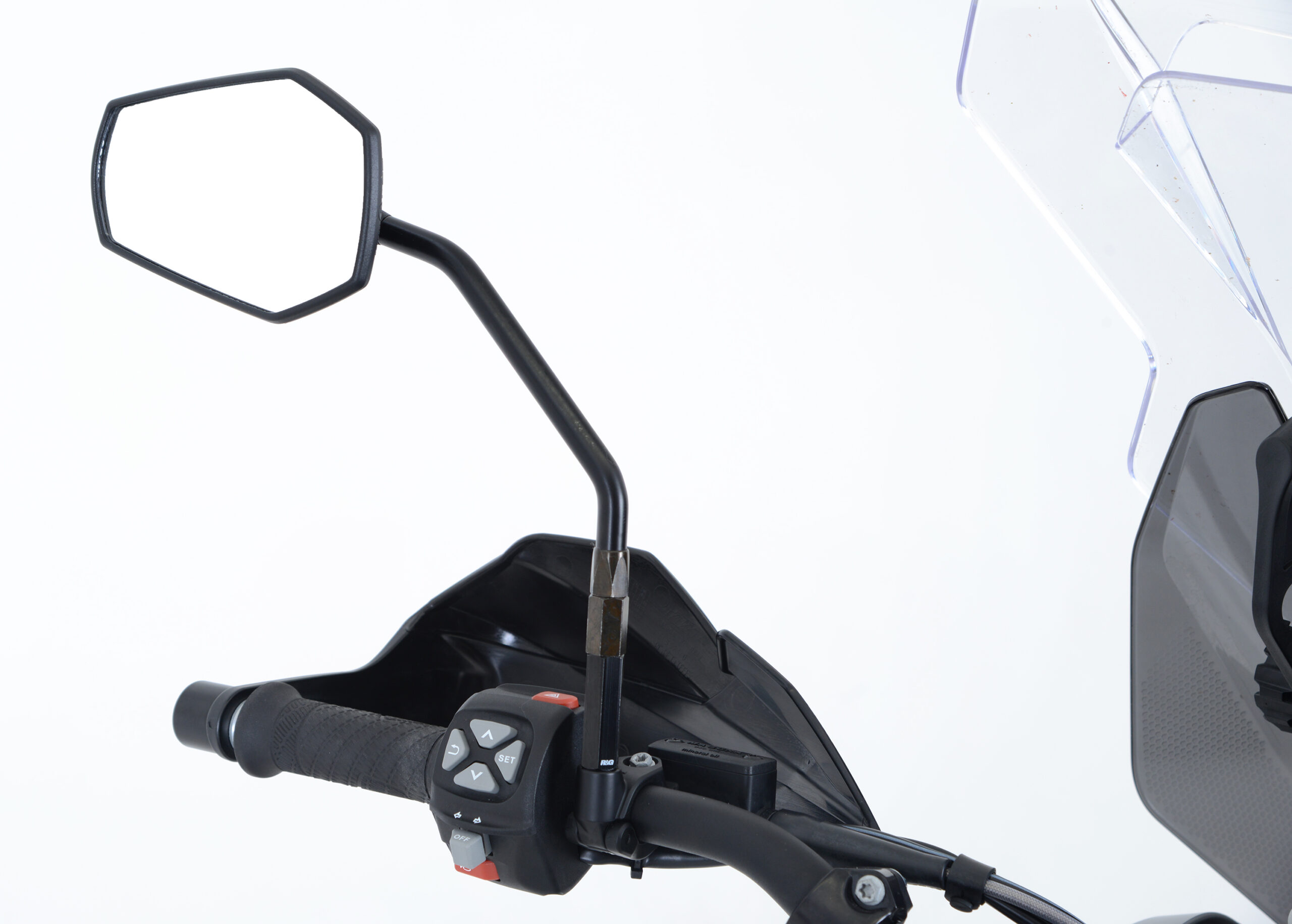 This extender raises the mirror by 45mm further up from original. Easy to fit. Simply unscrew your mirrors, screw the adaptor in place, and then refit your mirrors.
