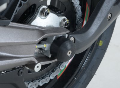 These swingarm protector kit is suitable for the Aprilia Caponord 1200 ’13- and fits into the left hand side (non exhaust side ONLY). This protector fits into the left hand side of the swing arm spindle and thanks to their expanding design are held securely inplace. Helping to protect the swingarm, rear calipers, discs and drive sprocket from damage in the event of a drop of crash. Sold as a single.