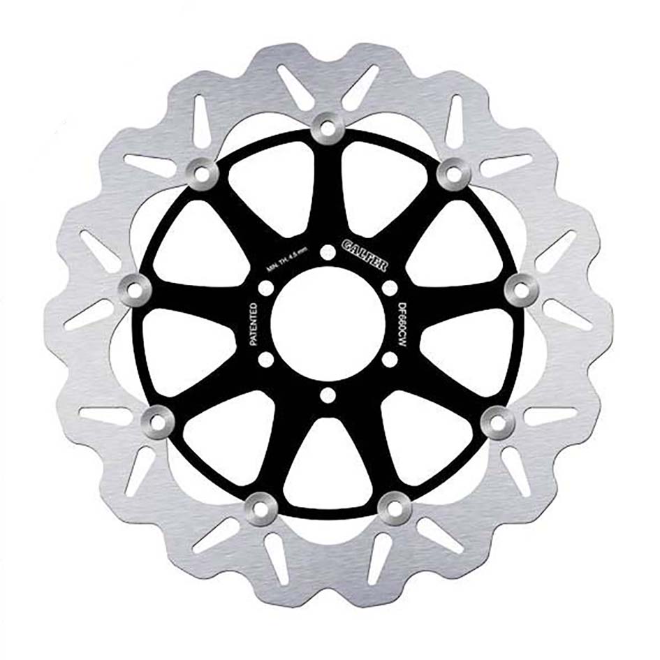 Galfer are the original designer and manufacturer of the wave disc, with wavy inner and outer edges. Advantages of this design are reduced weight & gyroscopic effect, more braking power, better heat dissipation, self cleaning effect and unique visuals.
