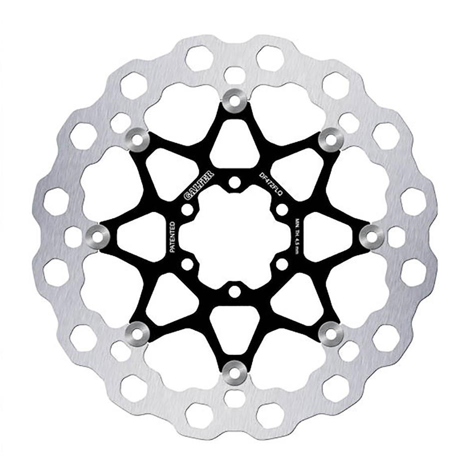 A constant contact surface width generates even pressure and wear on the pads. Reduced unspring mass reduces gyroscopic effect and improve manoeuvrability of the motorcycle. Floating disc with stainless steel carrier.