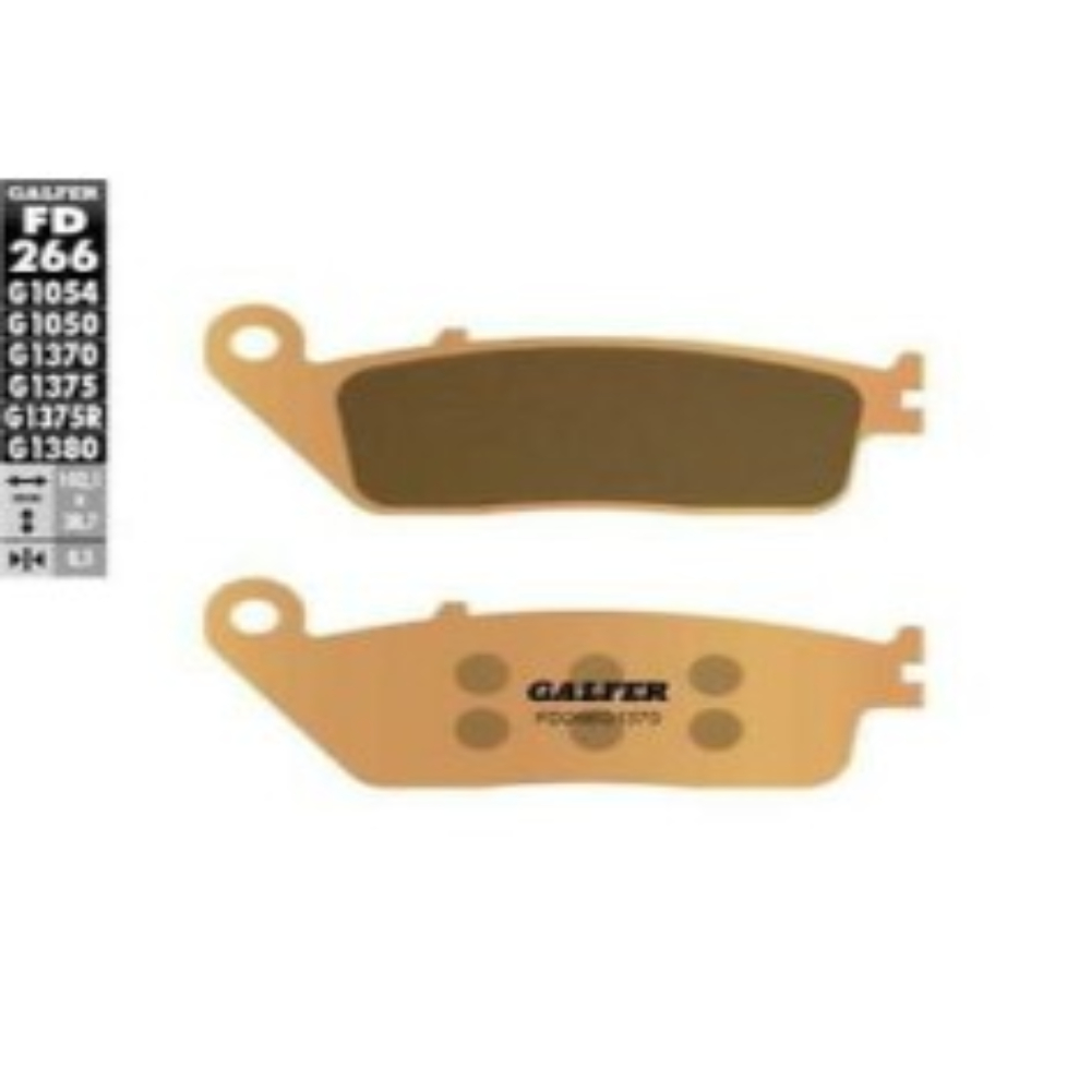 The Galfer G1375 sintered compound massively exceeds Original Equipment Manufacturer (OEM) performance, and feature ceramic plates. It offers excellent results in: high temperatures, and still performs well while cool; dry and wet weather; longevity; brake feel. Suitable for road / track.