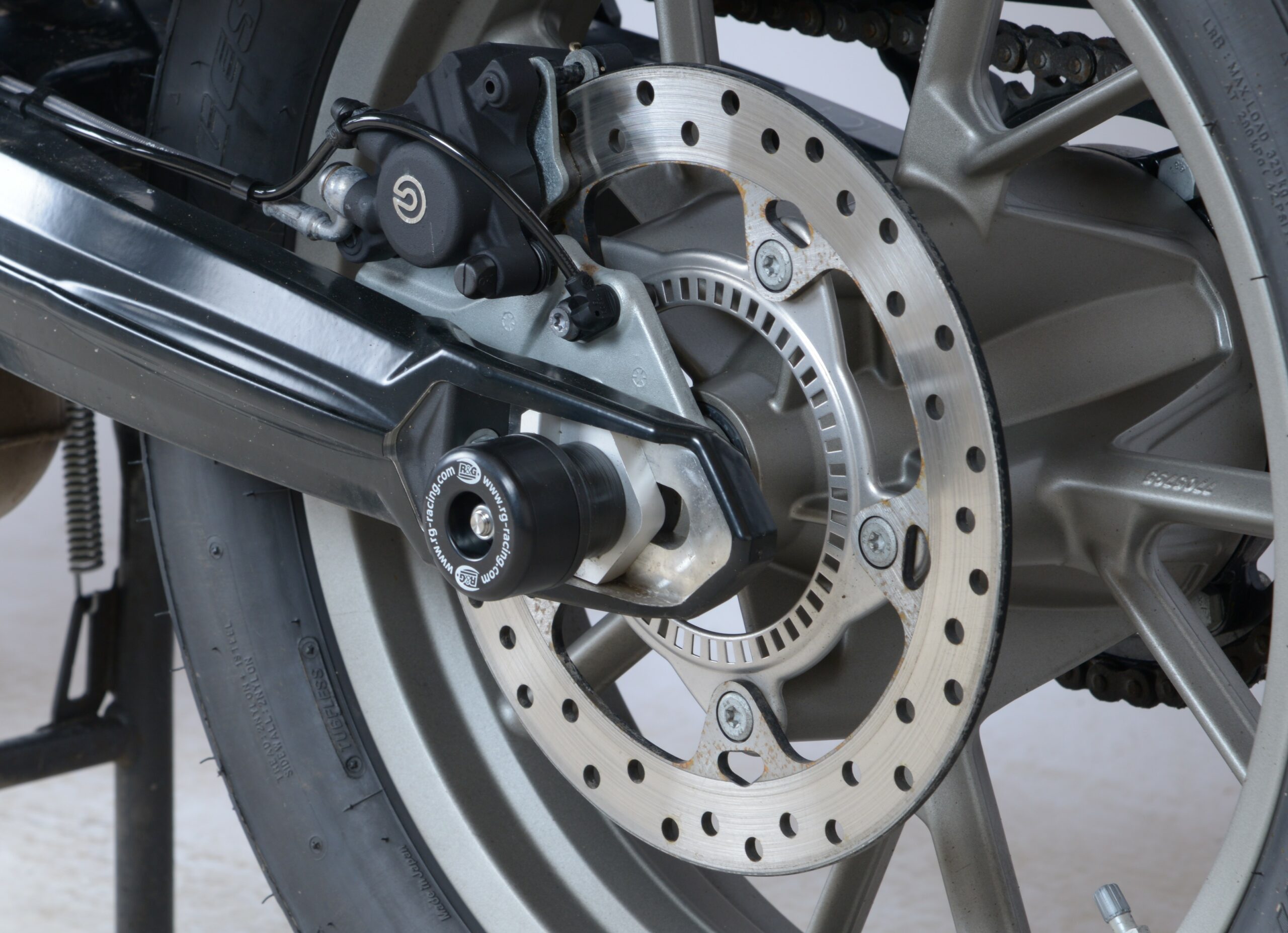 This pair of protectors fits into the side of the swing arm and helps to protect the swingarm, rear calipers, discs and drive sprocket from damage in the event of a drop of crash.