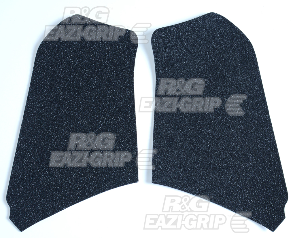 R&G Tank Traction Grip kits are available for many different bike styles and brands, with new applications released regularly. The unique R&G texture was specifically designed to be both soft and durable, providing the rider with the grip and feel he/she needs to assist in better bike control, enabling the rider to maintain a stable body position while cornering and braking, whilst also relieving fatigue and providing the rider with complete confidence allowing him/her to fully focus on the road (or track) ahead instead of slipping and sliding on the tank. Each Tank Traction Grip kit is supplied with precision pre-cut adhesive pieces, designed to fit the intended bike, typically in either 2, 4 or 6 pieces (in total) depending on the shape of the tank and adjoining fairing. The high-strength adhesive backing ensures a highly durable product that will stay exactly where you put it, as well as not affecting or damaging paintwork. Each R&G Tank Traction Grip kit is available in black and ultra-clear finishes to blend into your bike’s paintwork or stand out, depending on your preference. R&G works in both wet and dry conditions and is equally at home on the track as it is on the commute home! Please note: R&G Traction Grips now come with a 25mm diameter stick on emblem. This 2-piece Tank Traction Grip set has been specially designed for the BMW K1200R and the K1300R models. Made in the UK.