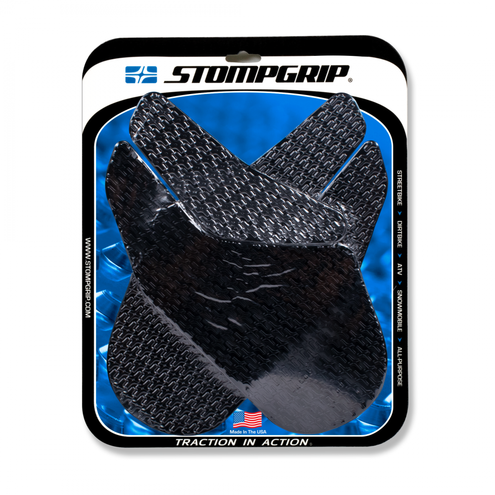 Looking for ways to improve your motorcycles grip and control on the road and track? Look no further than Stompgrip. Stompgrip provide high-quality traction pads for your motorcycle that are designed to increase your grip on the bike and reduce slipping. Made with a strong adhesive, Stompgrip traction pads are easy to apply and will stay securely in place for many miles of riding. Whether you're a professional racer or a weekend warrior, Stompgrip will help you stay in control and improve your riding experience. Check out our selection of Stompgrip products now! By following its mantra Stompgrip focuses on developing high quality products at a premium price. However, the majority of Stompgrip’s products retail for less than $100; so premium doesn’t always equal expensive. Stompgrip offers a high return on investment when compared with most accessories sold in the power sports industry; for a small price, riders of all levels can revolutionize how they ride.