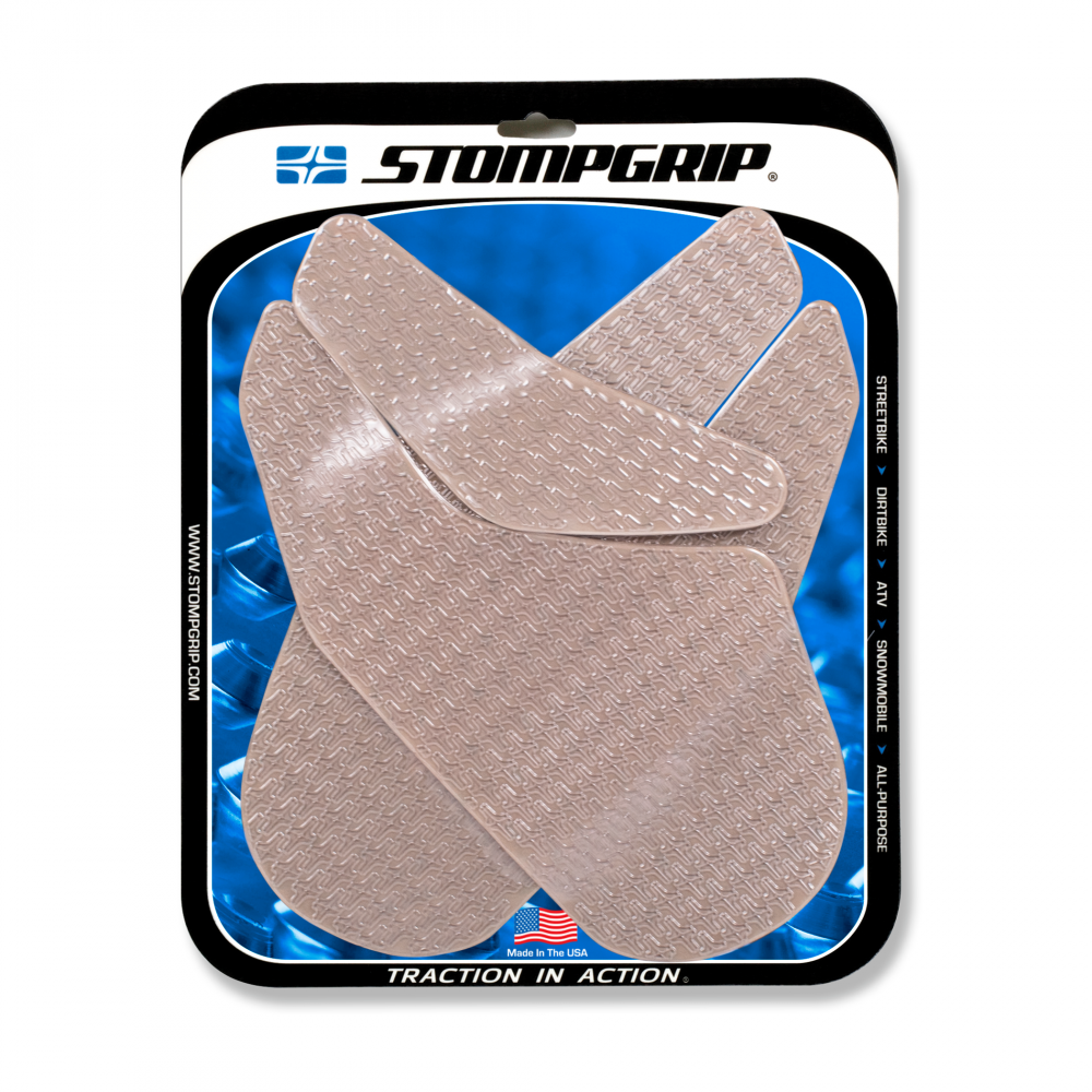 Looking for ways to improve your motorcycles grip and control on the road and track? Look no further than Stompgrip. Stompgrip provide high-quality traction pads for your motorcycle that are designed to increase your grip on the bike and reduce slipping. Made with a strong adhesive, Stompgrip traction pads are easy to apply and will stay securely in place for many miles of riding. Whether you're a professional racer or a weekend warrior, Stompgrip will help you stay in control and improve your riding experience. Check out our selection of Stompgrip products now! By following its mantra Stompgrip focuses on developing high quality products at a premium price. However, the majority of Stompgrip’s products retail for less than $100; so premium doesn’t always equal expensive. Stompgrip offers a high return on investment when compared with most accessories sold in the power sports industry; for a small price, riders of all levels can revolutionize how they ride.