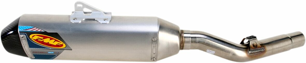 • In addition, FMF achieves a shorter overall length that is less susceptible to crash damage and complementary to their Factory Forward Engineering – moving the muffler closer to the motor to centralize mass