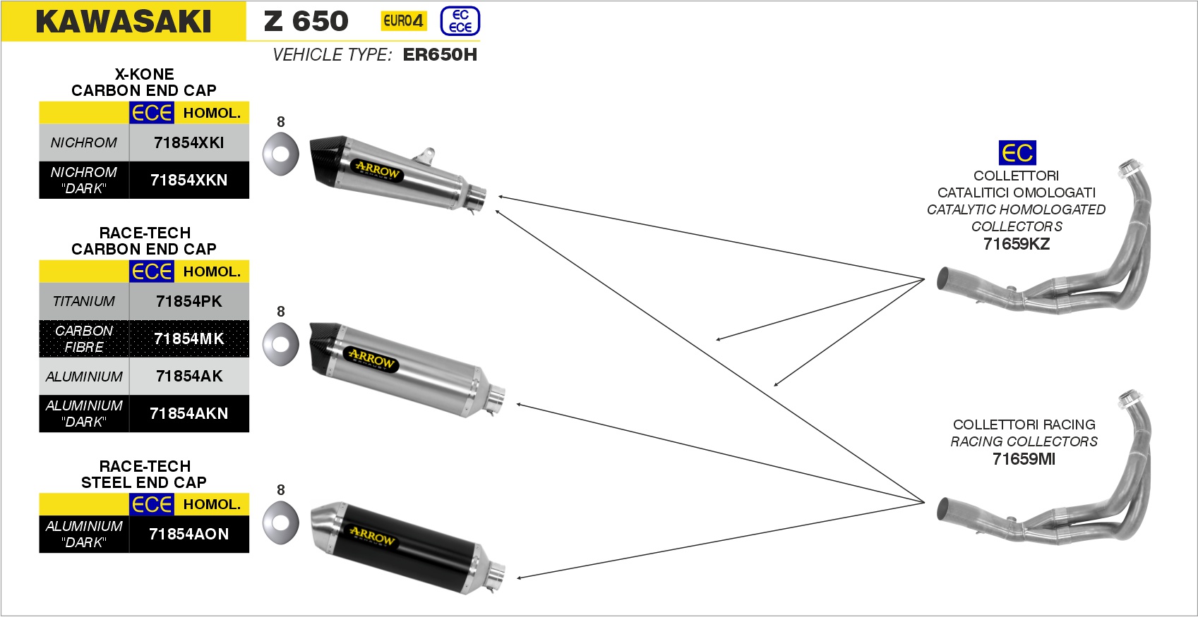 Kawasaki Z650 / Ninja 650 2017 2018 2019 2020 Arrow Exhaust