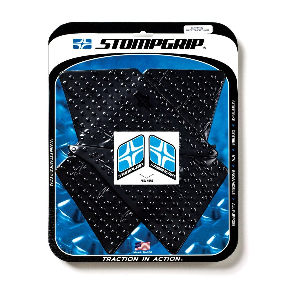 Looking for ways to improve your motorcycles grip and control on the road and track? Look no further than Stompgrip. Stompgrip provide high-quality traction pads for your motorcycle that are designed to increase your grip on the bike and reduce slipping. Made with a strong adhesive, Stompgrip traction pads are easy to apply and will stay securely in place for many miles of riding. Whether you're a professional racer or a weekend warrior, Stompgrip will help you stay in control and improve your riding experience. Check out our selection of Stompgrip products now! By following its mantra Stompgrip focuses on developing high quality products at a premium price. However, the majority of Stompgrip’s products retail for less than $100; so premium doesn’t always equal expensive. Stompgrip offers a high return on investment when compared with most accessories sold in the power sports industry; for a small price, riders of all levels can revolutionize how they ride.