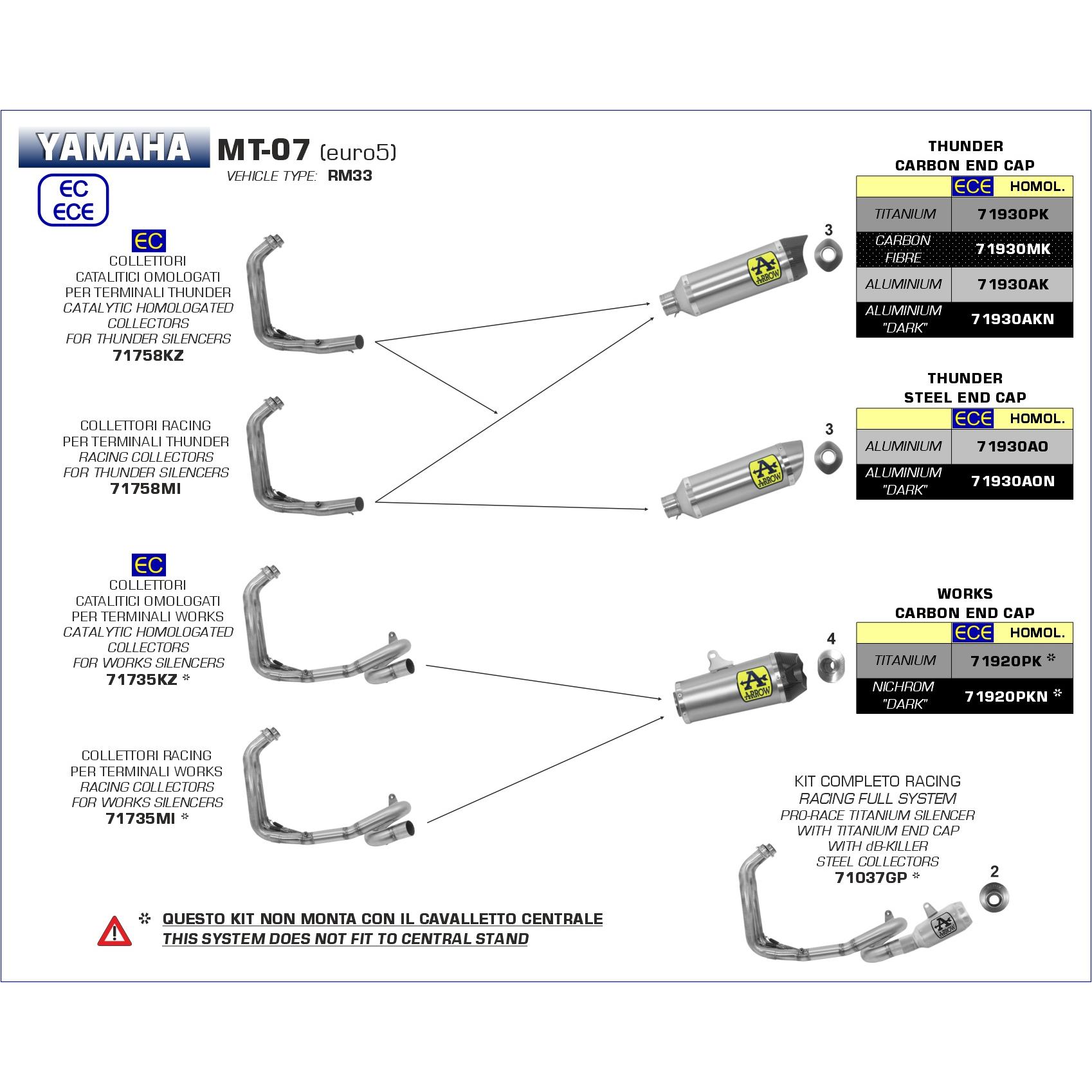 Yamaha MT-07 2021 2022 2023 2024 Arrow Exhaust