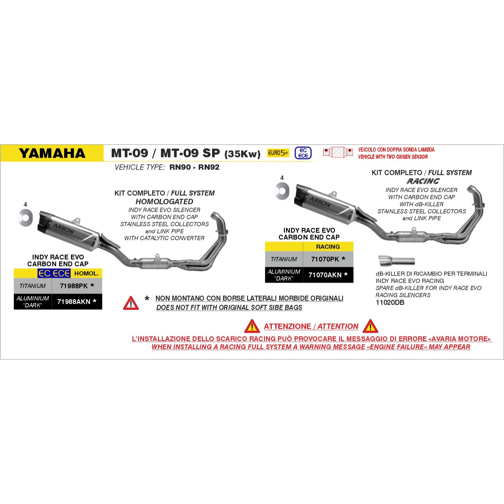 Yamaha MT-09 / MT-09 SP 35kw Euro 5 2024 2025 Arrow Exhaust